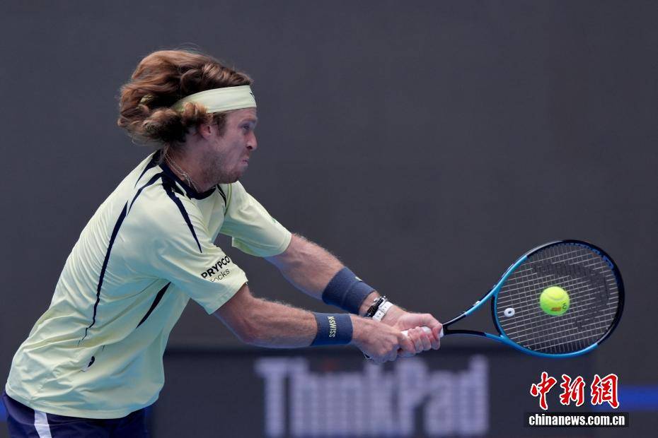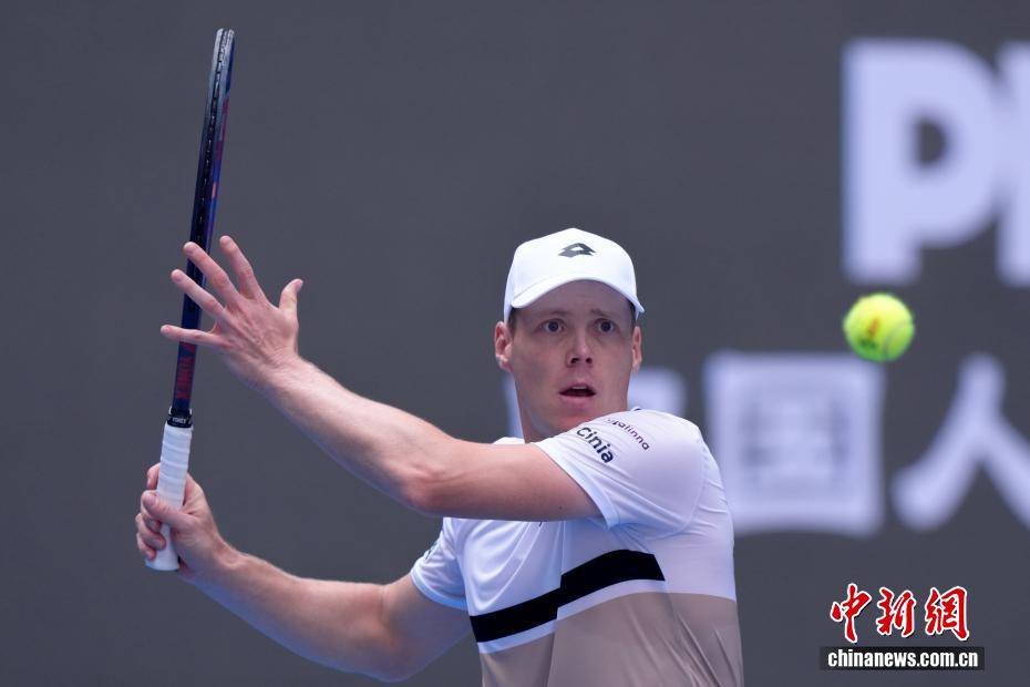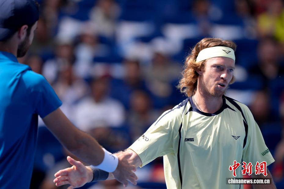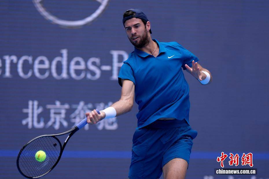 10月1日,在北京举行的2025中国网球公开赛男双决赛中,两届大满贯冠军组合、3号种子海利厄瓦拉/帕滕,通过抢十,战胜卡恰诺夫/卢布列夫组合,夺得男双冠军。图为卡恰诺夫在比赛中。中新社记者 张祥毅 摄