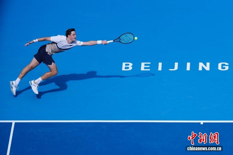 10月1日,在北京举行的2025中国网球公开赛男双决赛中,两届大满贯冠军组合、3号种子海利厄瓦拉/帕滕,通过抢十,战胜卡恰诺夫/卢布列夫组合,夺得男双冠军。图为卢布列夫在比赛中。中新社记者 张祥毅 摄