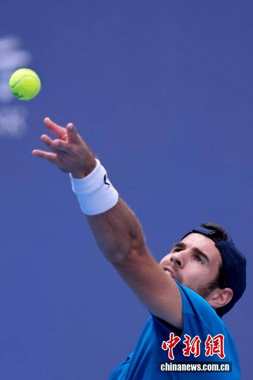 10月1日,在北京举行的2025中国网球公开赛男双决赛中,两届大满贯冠军组合、3号种子海利厄瓦拉/帕滕,通过抢十,战胜卡恰诺夫/卢布列夫组合,夺得男双冠军。图为卡恰诺夫在比赛中发球。中新社记者 张祥毅 摄