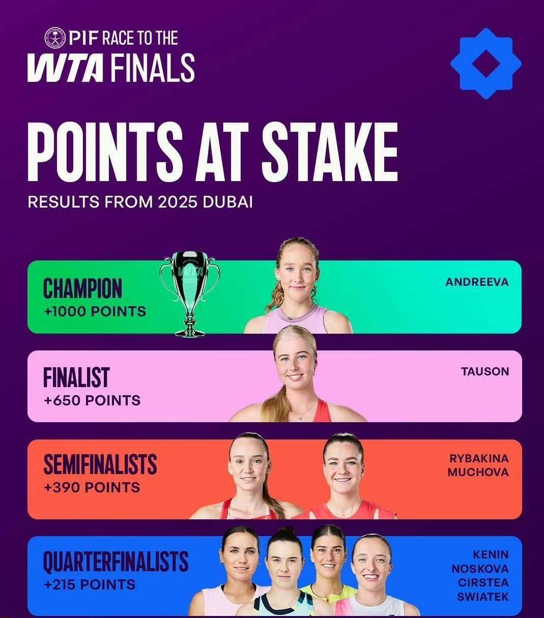 其他选手方面,丹麦选手克拉拉·陶森作为12号种子,需要守住650个亚军积分;卡洛琳娜·穆霍娃需要保住390分;肯宁、琳达·诺斯科娃等则需要捍卫215个积分。相较之下,阿曼达·阿尼西莫娃和科科·高芙则拥有更大的涨分空间。
